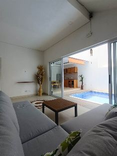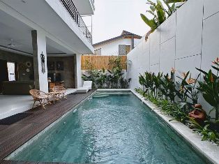 ID : P20259RCL VILLA CANGGU 1.9 km from nelayan beach Land size 160 sqm Build. size 250 sqm 3 bedrooms 3 bathrooms Pool 6 pers. max.