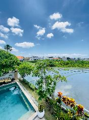 ID : P2024NFG9 VILLA CANGGU 4.6 km from batu bolong beach Land size 300 sqm 2 bedrooms 3 bathrooms Pool Sublease 4 pers. max.
